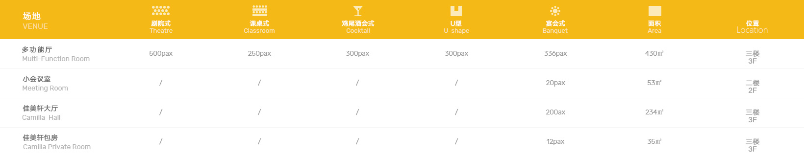 酒店拥有750平方米的会议及宴会场地,包括一间可配置最新会议技术、430平方米的大宴会厅,53平方米的小会议室以及嘉美轩餐厅宽敞的宴会场地。无论是商务活动还是社交聚会,酒店每一位服务团队成员都将尽心帮助您打点每个细节,确保您的活动成功举行,带给您完美的会议与宴会活动体验。